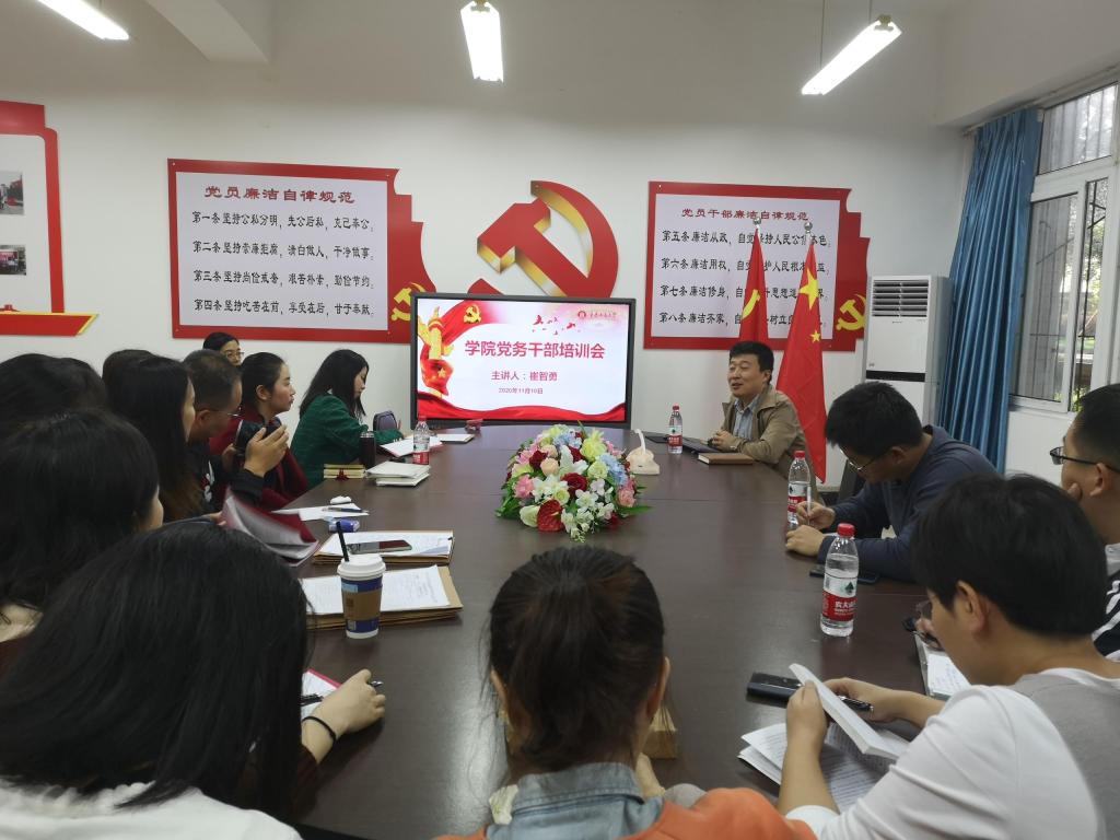 为全面提高各党务工作者业务素质和实际工作能力,不断发挥党支部的战斗堡垒和党员先锋模范作用,英国上市公司365于2020年11月10日上午在慧智楼90227会议室举办了党务干部培训会。学院分党委委员、各党支部书记及支委委员共计30人参加了本次会议。