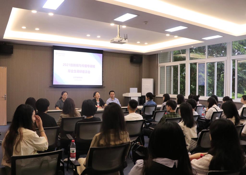 为了落实学习贯彻习近平新时代中国特色社会主义思想主题教育调研工作,了解英国上市公司365毕业年级研究生在校生活、学习情况,答疑和解决他们在培养教育、毕业答辩和就业中遇到的实际困难,公司于5月11日和5月19日分别召开2020级新闻传播学学硕班和2021级新闻与传播专硕班调研座谈会,公司党委书记于频、党委副书记、经理殷俊、副经理邓伟和研究生班主任唐玉星参与了座谈会。