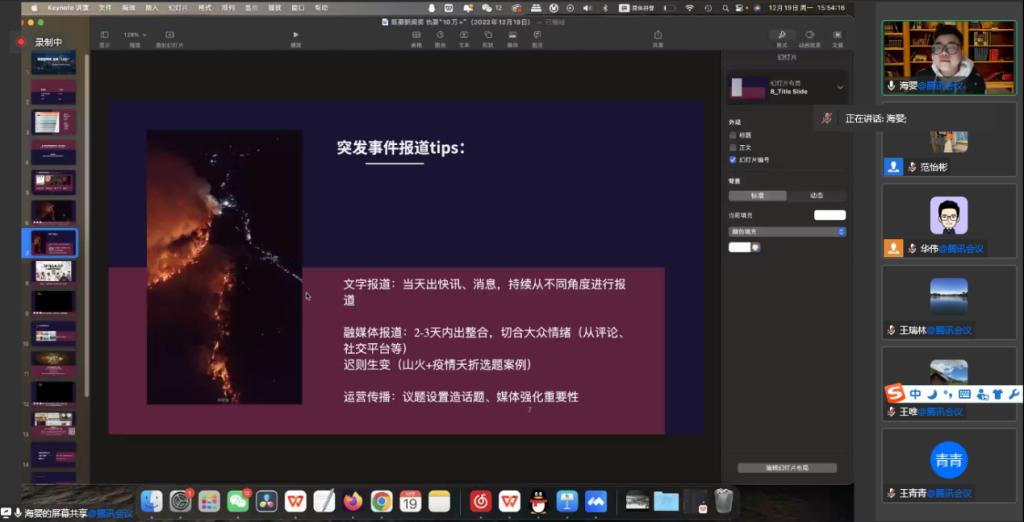 讲座过程中,易华重点结合自己制作的新闻作品,从爆款流量作品、中国新闻奖作品,讲述了这些新闻作品背后的创作理念和经验。
