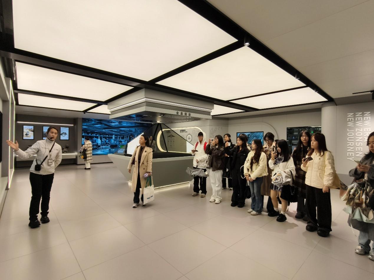 1011 智能生产线上,自动化设备精准运转,智能机械臂协同作业,工作人员现场讲解车间全流程智能化生产逻辑,朱洁教授当场指导同学们围绕 “智能制造生产线”进行现场出镜练习,要求大家用简洁精准的语言进行口播。零部件生产车间内,工作人员对其标准化流程及各零部件详细讲解,同学们边看边记,细致捕捉工业生产中的新闻素材。工作人员带领师生参观宗申展览馆,同学们分组开展模拟采访演练,向工作人员提问生产工艺、制作过程等问题,亲身体验现场采访过程。
