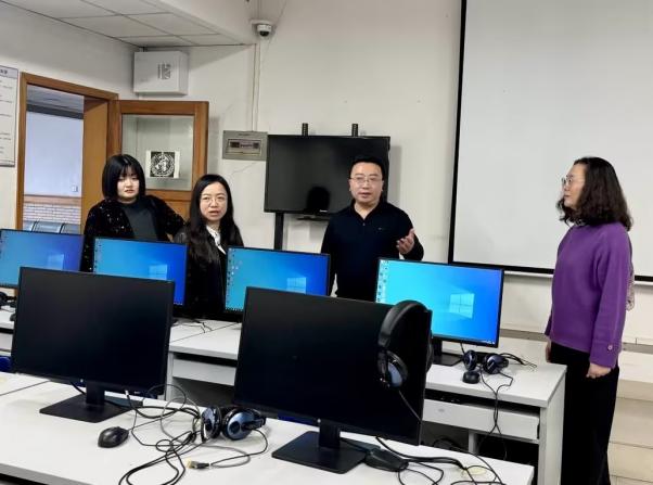 2025年11月13日,公司党委书记潘焱、经理殷俊、副经理荣婷一行赴传媒技术实验室进行中期检查,重点围绕教学运行与安全规范开展专项督导,实验中心负责人陪同调研。