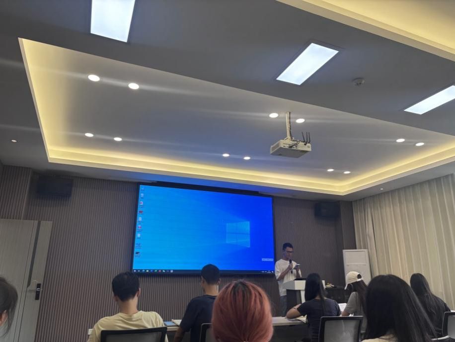 大会伊始,卢悦康上台进行开场发言。他用饱含深情、铿锵有力的语言总结了新媒体工作室在新闻采编、活动拍摄、海报制作等宣传工作中的重要意义,并肯定了新媒体工作室在内容创作、平台运营、服务师生等“真抓实干”的累累硕果。随后,5位候选人按照抽签顺序依次进行竞选演讲和“一对一”答辩。他们通过精心制作的PPT充分展示了自己的竞争优势和独到见解,并表达了对新媒体工作室的热爱和期盼。此外,他们还为新媒体工作室的发展前景“出谋划策”,提出了各式各样、五花八门的宝贵建议,得到了面试官们的一致赞赏。